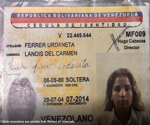 una foto de la cédula que portaba Aida Merlano al momento de su captura en Venezuela. Este, sería el documento con el cual se estaría desplazando libremente entre el vecino...