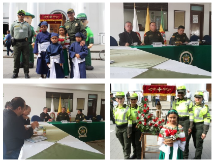 El Director General de la Policía Nacional, General Jorge Hernando Nieto Rojas, junto con Monseñor Fabio Suescún Mutis, toda la cúpula de Generales y a través de videoconferencia con los...