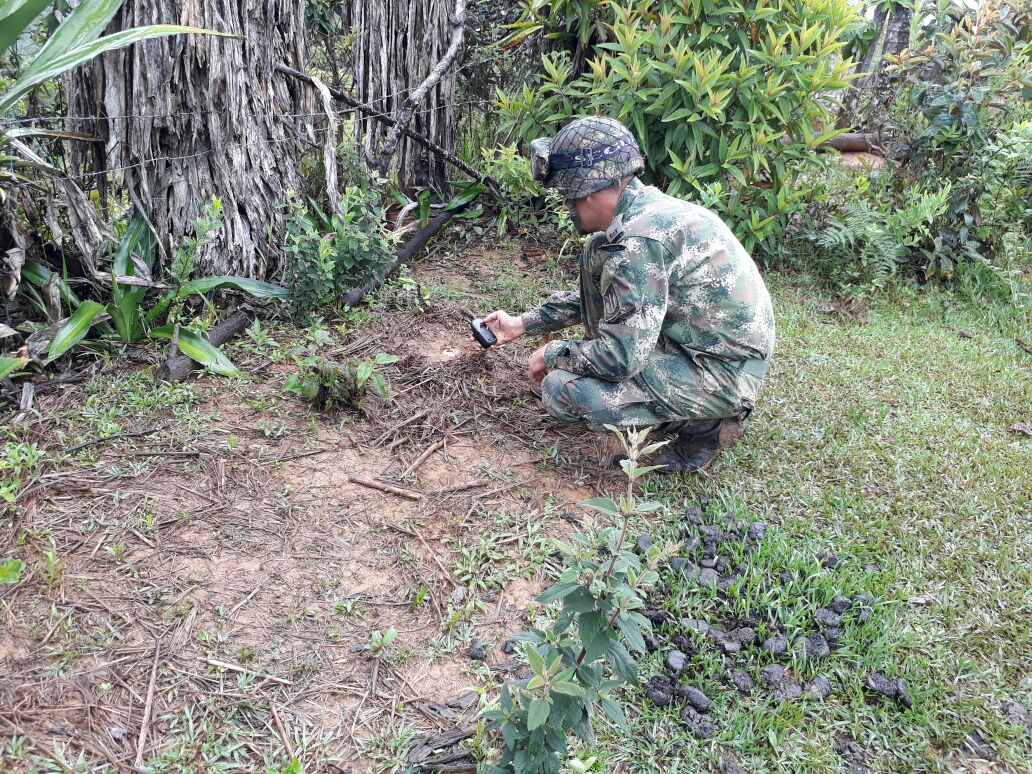 En la vereda Baraya, del municipio del Tambo Héroes Multimisión de la Fuerza de Tarea Apolo ubican una mina antipersona. Cauca. Gracias a la reacción oportuna del grupo de...