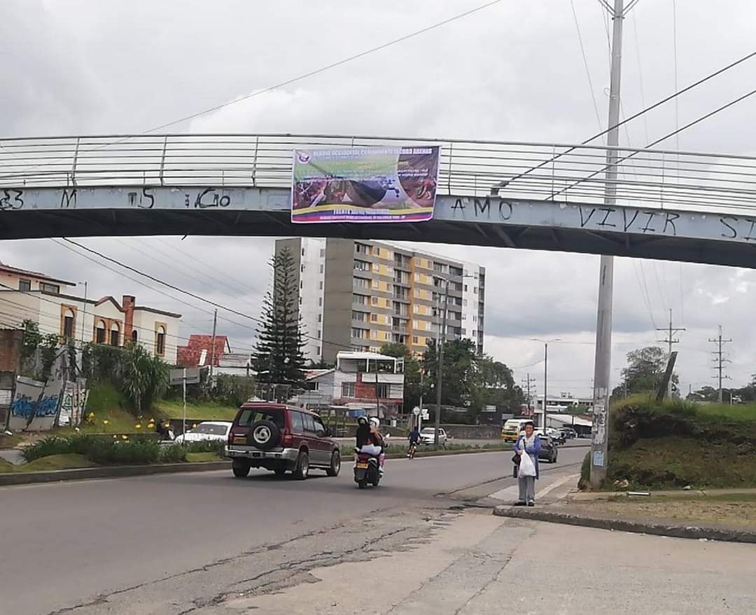 Una de las principales armas de las guerrillas colaborativas es la invención, ruptura y ocupación transitoria de espacios, cuya potencia se ve amplificada a través de la tecnología, el arte, el trabajo, la inteligencia, la pasión y el afecto donde en estos días electorales se ve reflejada en instalar pasacalles , pendones o mensajes que son claros invitando a votar por aquellos candidatos de ideas que han servido para sus propósitos donde la democracia empieza a perder espacio en cada rincón del Cauca , demostrando que el tener frenado a las fuerzas policiales y militares lo están logrando gracias a un gobierno permisivo que con la escosa de la Paz Total esta modelando es la confirmación de la violencia no solo en zonas rurales sino ahora en zonas urbanas como lo visto con el mensaje en un puente peatonal de la bella Ciudad Blanca.