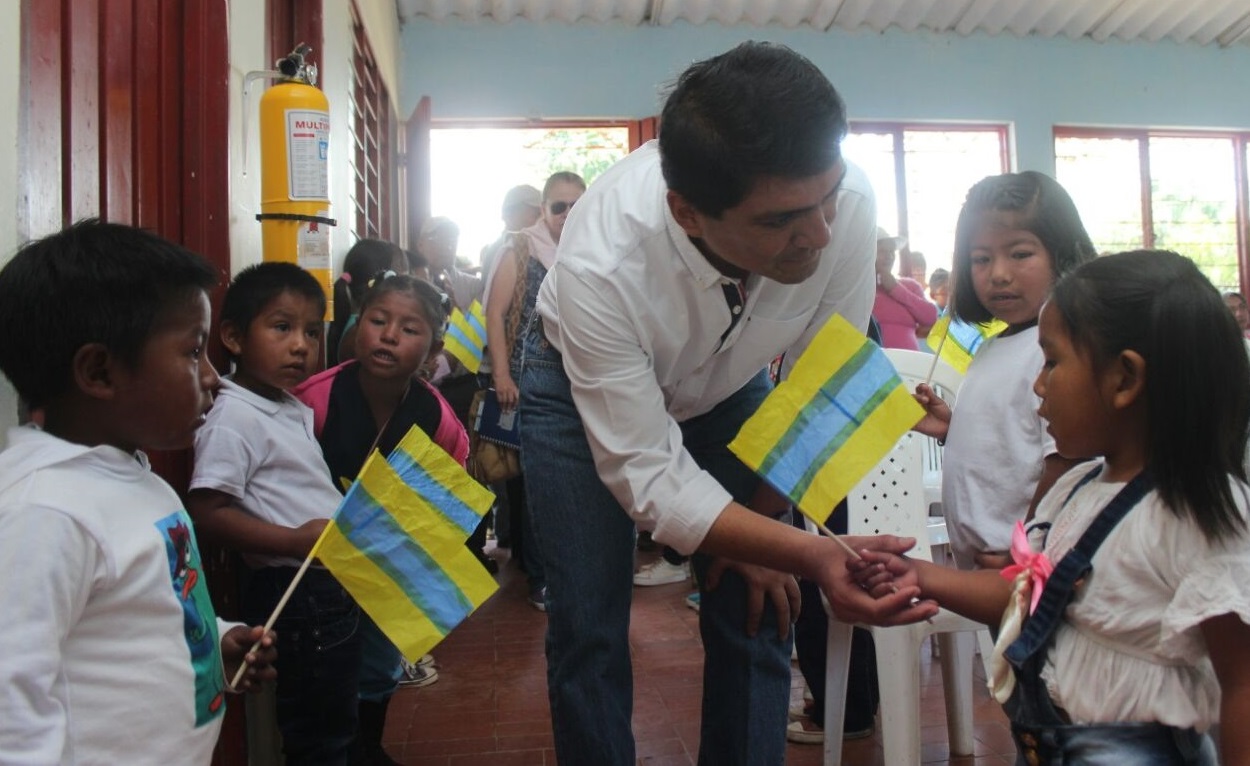 Con un bonito recibimiento de parte de un grupo de niños en la Institución Educativa Las Huacas, la comunidad de la vereda Clarete le dio la bienvenida al alcalde César Cristian Gómez Castro, quien se trasladó a este sector rural de la capital caucana para hacer entrega de dos importantes obras que contribuirán a mejorar la calidad de vida de la comunidad de este sector al norte de Popayán.